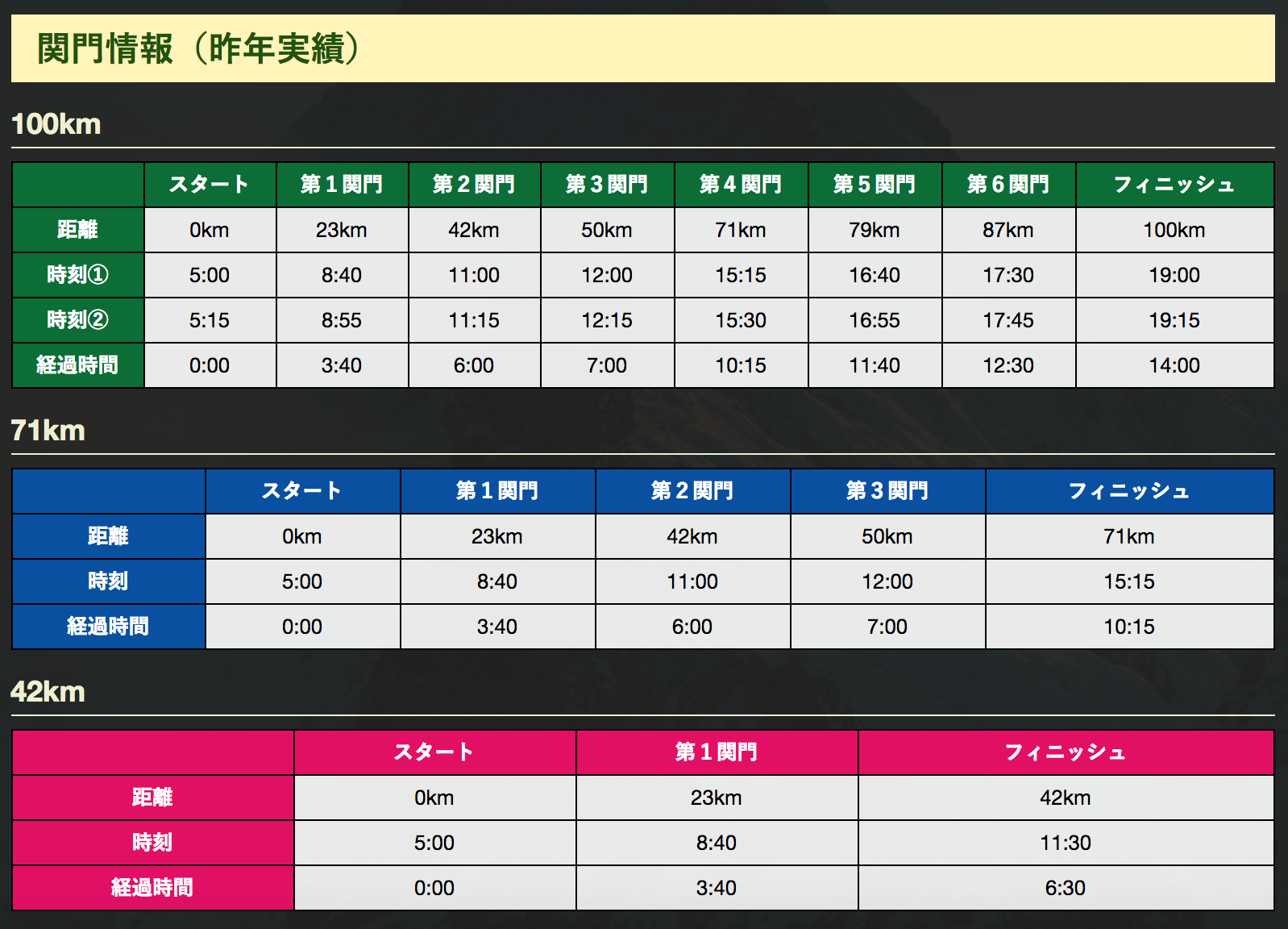 比赛项目:100公里、71公里、42公里
