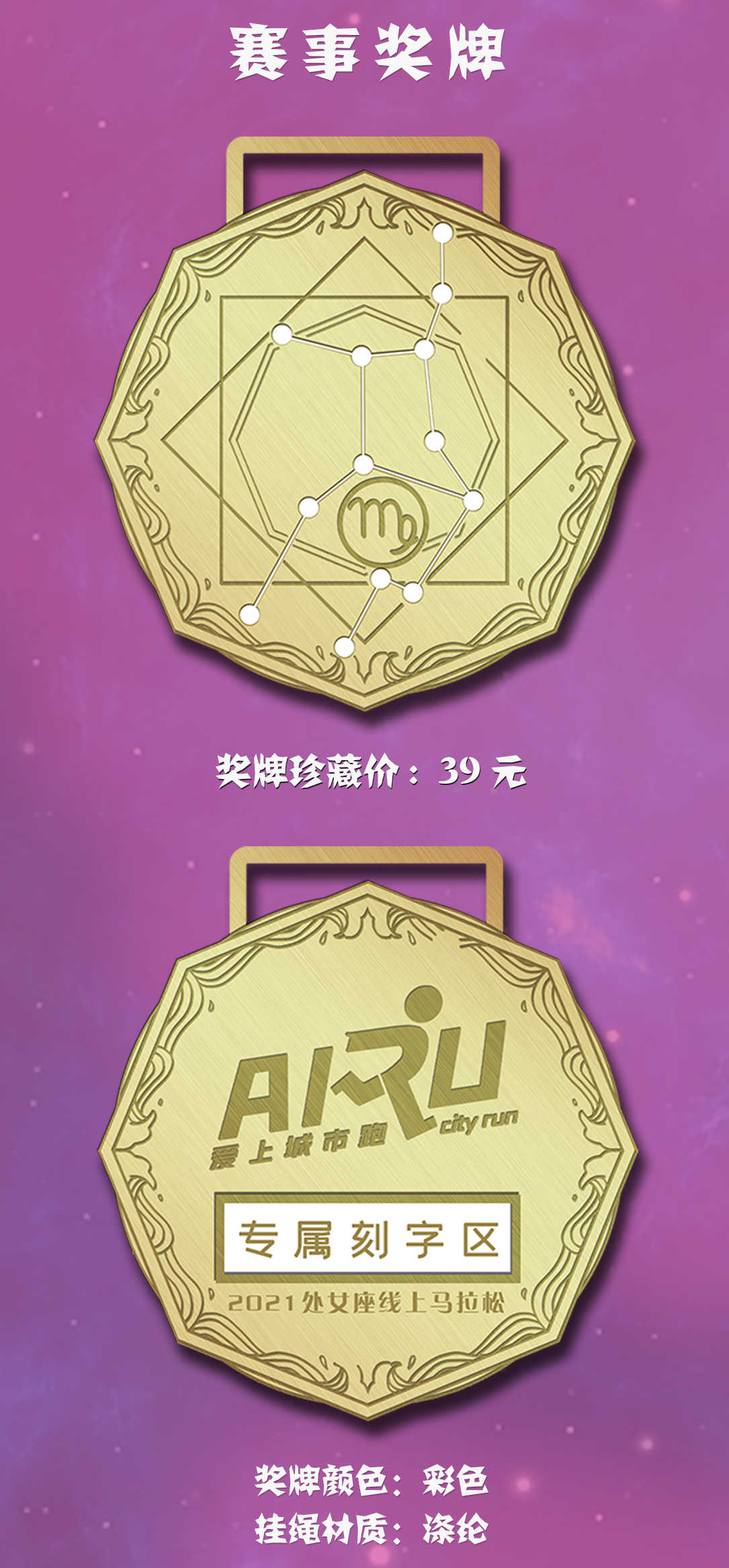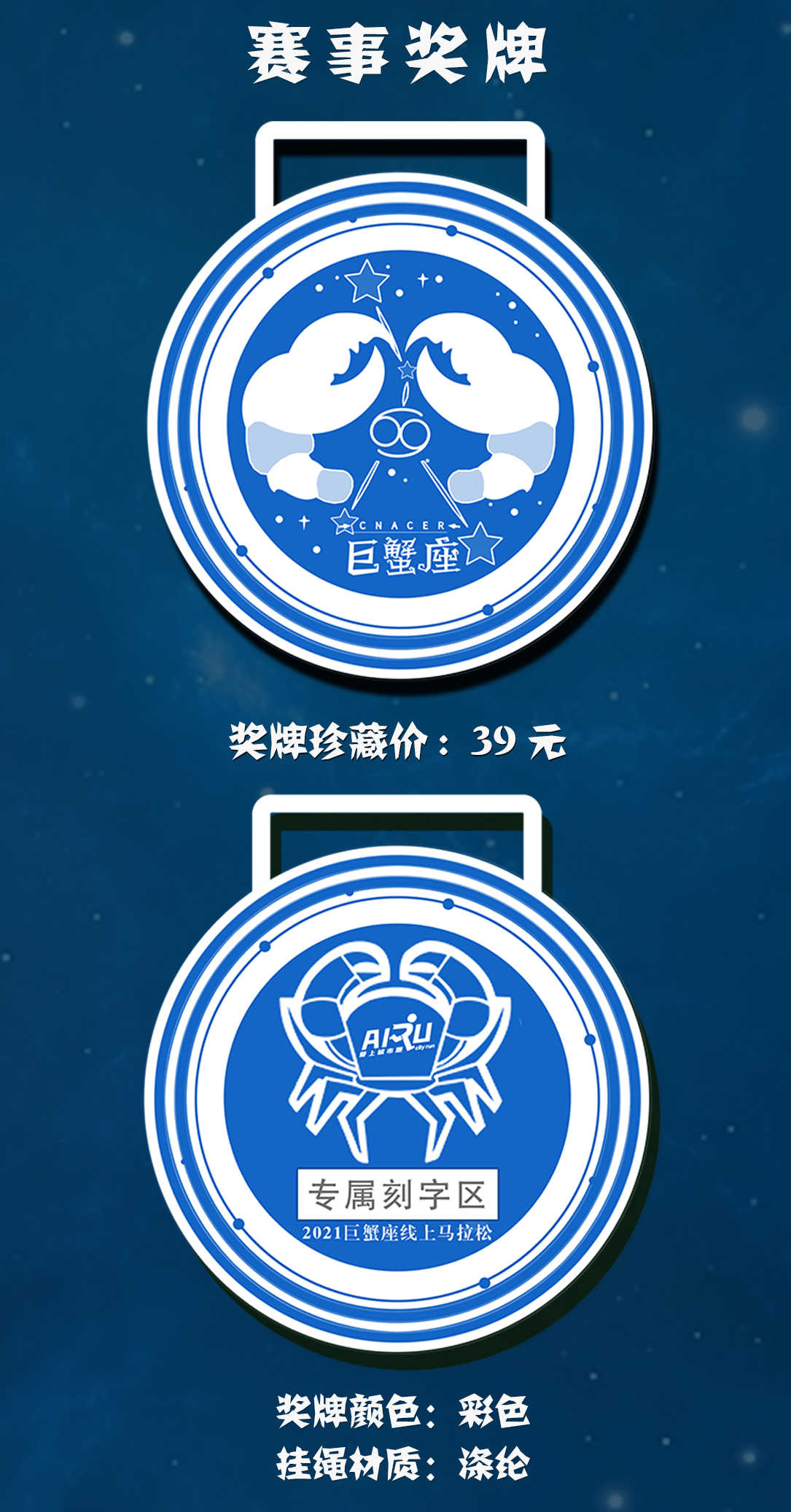 • ●套餐A:完赛奖牌+电子成绩证书,39元